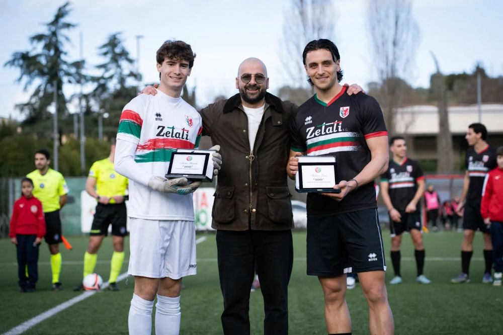 Omaggio speciale nel pre-partita di Grassina-Colligiana: il main sponsor Tommaso Zepponi ha premiato con una speciale targa Matteo Bartoli e Federico Dini, giunti alle 100 presenze con la maglia del Grassina